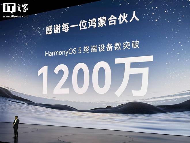 IT之家 8 月 25 日消息,在今天的智界及问界秋季新品发布会上,华为常务董事、终端 BG 董事长余承东宣布鸿蒙 HarmonyOS 5 终端设备数突破 1200 万。