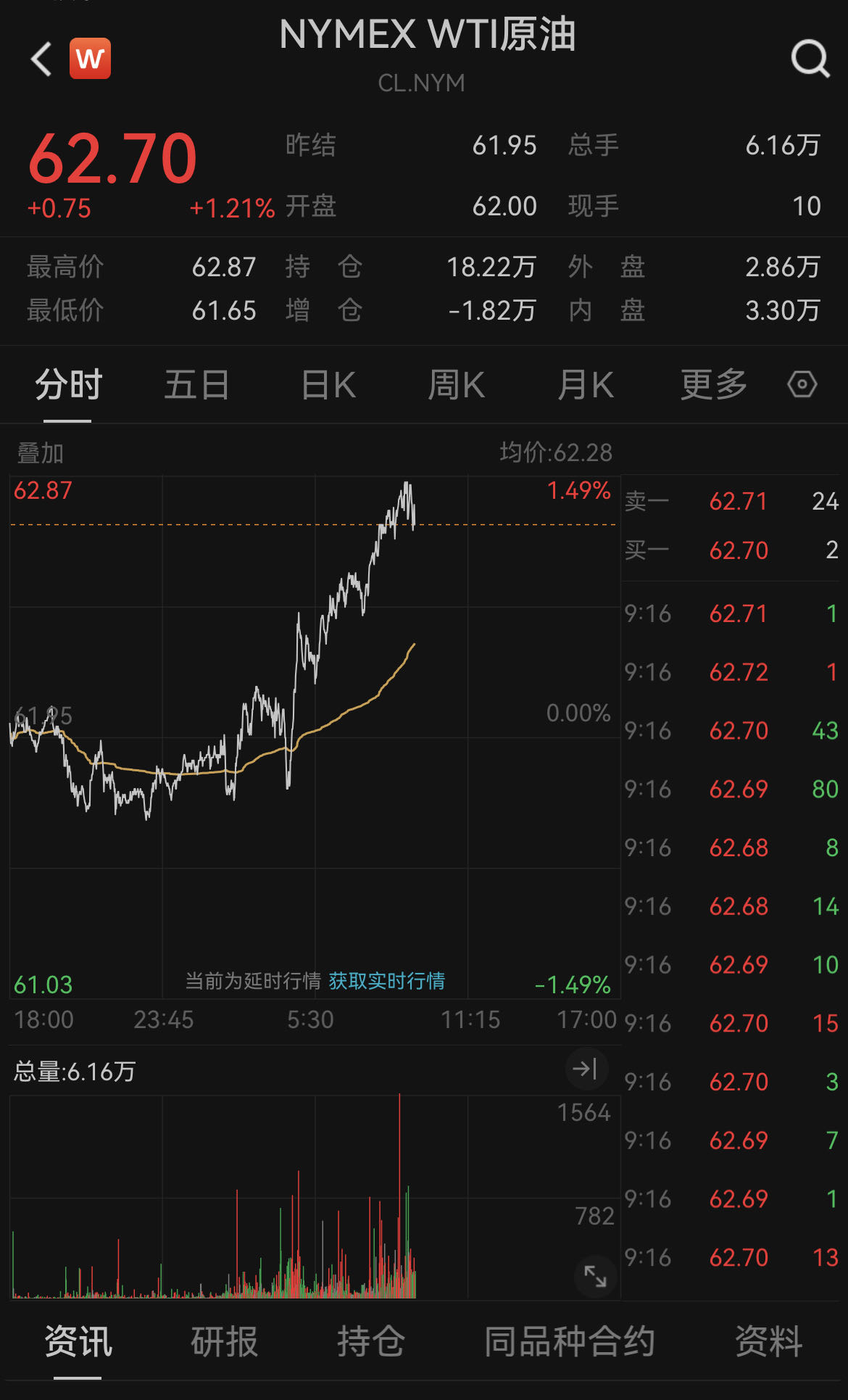 国际油价继续走高。NYMEX WTI原油、ICE布油双双涨超1%。